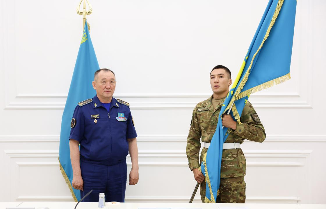 Сегодня в Министерстве обороны Республики Казахстан прошла торжественная церемония передачи Государственного флага капитану национальной сборной команды, рядовому срочной службы Санжару Нурсеитову. Мероприятие, в котором по видеосвязи приняли участие главнокомандующие видами Вооружённых сил, командующие родами войск и региональными командованиями, а также военнослужащие, стало символом единства и поддержки армейских спортсменов.